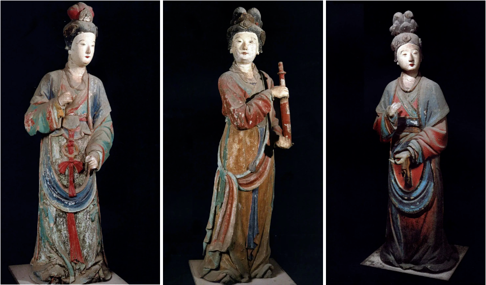 晉祠圣母殿侍女像作于北宋元佑年間,約1082年左右,是晉祠彩塑中最出色的一組人物塑像。伴隨著微弱的光,一尊尊宋代侍女塑像便緩緩走進了紀(jì)錄片的鏡頭。