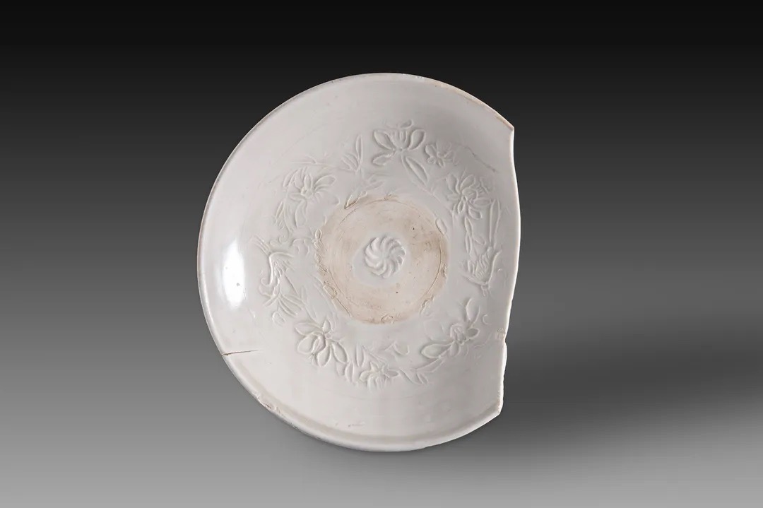 霍州窯出土的金代細(xì)白瓷印花淺盤(pán)(蓮紋)。山西省考古研究院供圖