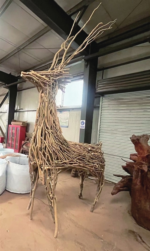 10月24日,記者在該中心看到,工作人員創(chuàng)作了大型鹿形展品及駱駝、袋鼠、犀牛等小型動(dòng)物展品。這些作品生動(dòng)精巧,充分保留了植物材料的自然美感,展現(xiàn)了園林廢棄物的藝術(shù)潛力。將綠廢轉(zhuǎn)化為文創(chuàng)展品,不僅開(kāi)辟了一條資源化利用的“新賽道”,更將環(huán)保理念融入了藝術(shù)創(chuàng)作,為未來(lái)園林垃圾的“變廢為寶”提供了充滿(mǎn)想象力的發(fā)展方向。這一嘗試顯示,綠廢資源的價(jià)值挖掘正從功能層面向文化審美層面不斷深化與拓展。(劉曉亮文/攝)