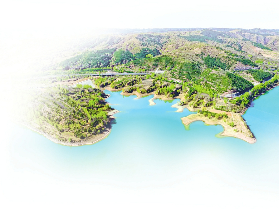 左權(quán)縣左權(quán)湖與湖岸線、樹木相互映襯,繪就一幅美麗的生態(tài)畫卷。張文軍攝