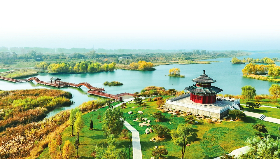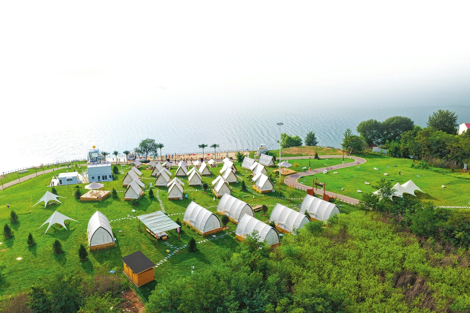 長(zhǎng)治市漳澤湖MANA水岸度假區(qū)綠草如茵、碧波蕩漾。張國(guó)平攝