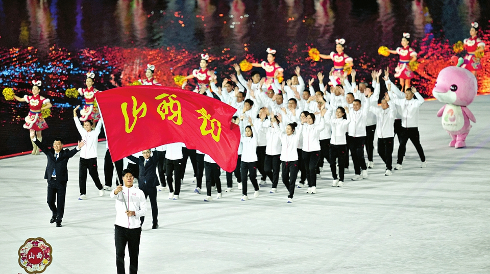 11月9日,第十五屆全國運動會開幕式在廣東奧林匹克體育中心舉行。圖為當(dāng)日,山西省體育代表團(tuán)在入場儀式上。
