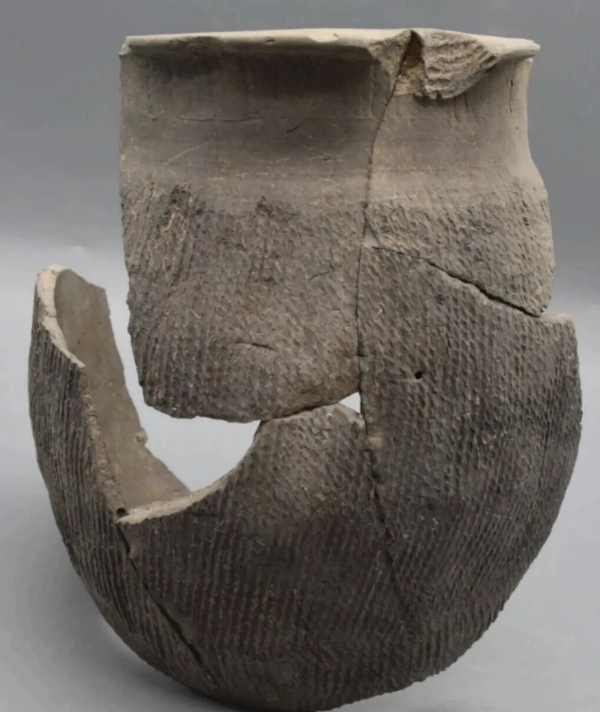 石器有穿孔石刀、石鐮。鬲與大口尊時代特征鮮明,鬲折沿為主,少量卷折沿,圓唇或尖圓唇,束頸,腹垂鼓,襠較高,尖錐狀足,器身飾較細的豎向繩紋,襠部飾橫向繩紋,足根素面。大口尊口徑明顯大于肩頸。器物年代在二崗下層文化偏晚階段。