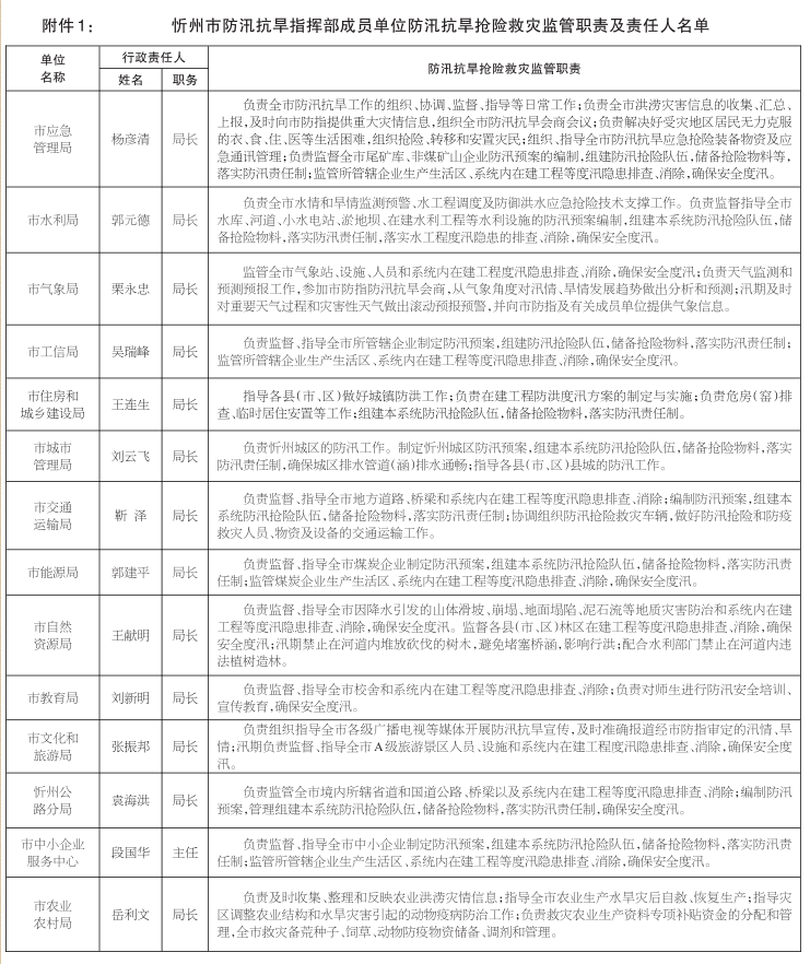 | 忻州市防汛抗旱指揮部關(guān)于2021年全市防洪重點(diǎn)和抗旱責(zé)任人名單的公示 |