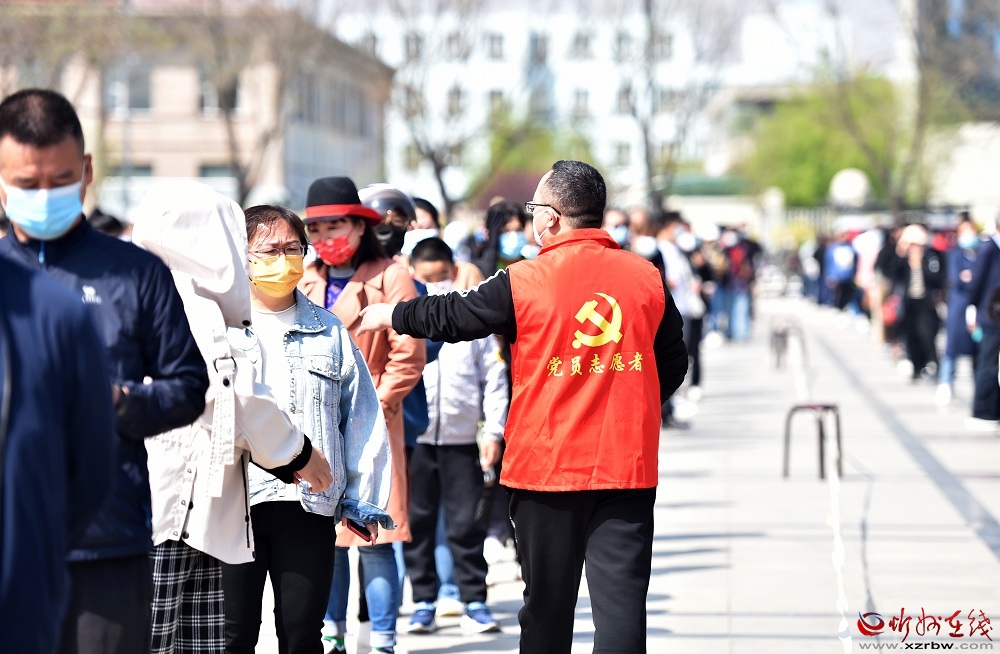 “我們城南區(qū)域設(shè)置了6個核酸檢測點,許多黨員志愿者主動請纓、投身疫情防控一線,用實際行動展現(xiàn)了黨員的責(zé)任和擔(dān)當(dāng)?!痹诩t旗廣場檢測點,南城辦黨工委書記張斌拿著小喇叭,在隊伍中間來回穿梭,指揮志愿者引導(dǎo)市民分批次、分時段有序檢測,防止人員扎堆聚集,避免交叉感染。