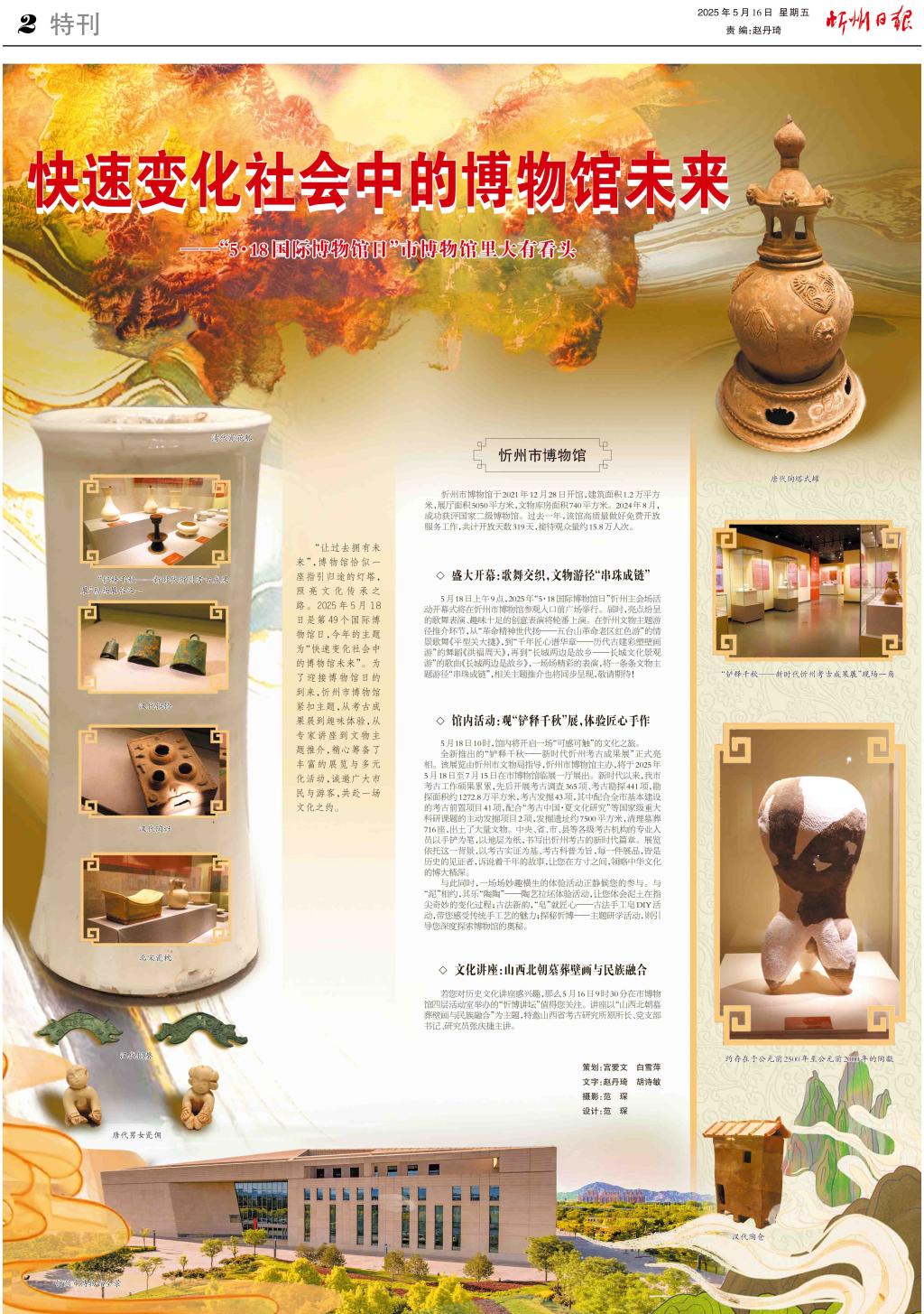 “讓過去擁有未來”,博物館恰似一座指引歸途的燈塔,照亮文化傳承之路。2025年5月18日是第49個國際博物館日,今年的主題為“快速變化社會中的博物館未來”。為了迎接博物館日的到來,忻州市博物館緊扣主題,從考古成果展到趣味體驗,從專家講座到文物主題推介,精心籌備了豐富的展覽與多元化活動,誠邀廣大市民與游客,共赴一場文化之約。