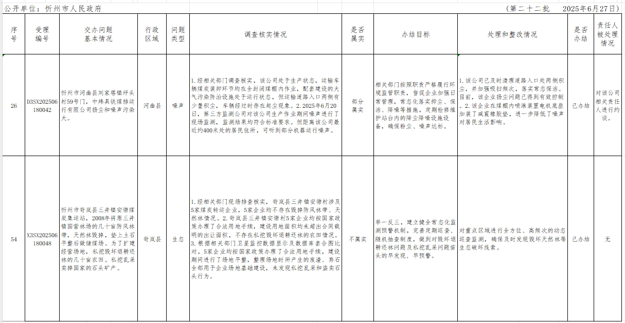 中央生態(tài)環(huán)境保護(hù)督察組群眾信訪舉報(bào)轉(zhuǎn)辦和邊督邊改公開情況一覽表(第二十二批)