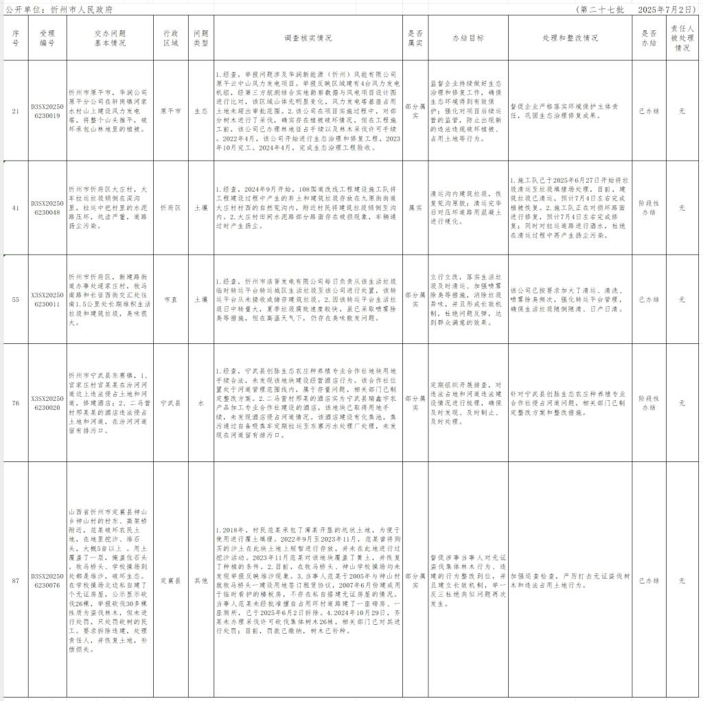 中央生態(tài)環(huán)境保護(hù)督察組群眾信訪舉報轉(zhuǎn)辦和邊督邊改公開情況一覽表(第二十七批)