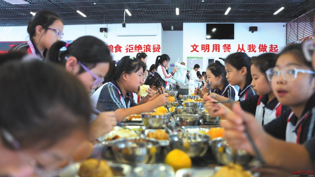 走進長城小學,1535.25平方米的校內餐廳里,900余名師生在老師引導下有序取餐、就餐,餐盤里葷素搭配的飯菜色香味俱全,孩子們的臉上滿是笑意?!耙郧鞍謰尮ぷ髅?,我每天得坐校車來回跑,現(xiàn)在有了午托太幸福了!午餐每天不重樣,有肉有湯,比媽媽做得還香!”六年級學生李宸慶捧著飯菜笑著說。