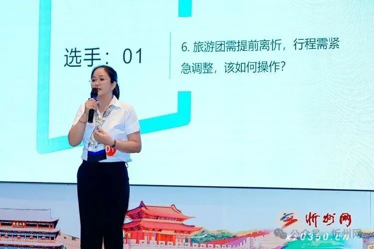 決賽現(xiàn)場亮點(diǎn)紛呈,選手們以生動語言勾勒忻州文旅全景:有的以 “行走‘忻’長城” 為主題,串聯(lián)偏關(guān)老牛灣、代州邊靖樓的邊塞傳奇;有的聚焦 “探訪‘忻’建筑”,解讀應(yīng)縣木塔的營造技藝與佛光寺的千年底蘊(yùn);還有的通過 “自在‘忻’生活” 主題,將寧武毛健茶、忻府區(qū)面塑等非遺元素融入講解,讓觀眾沉浸式感受地域文化魅力。在模擬帶團(tuán)環(huán)節(jié),選手們針對 “游客突發(fā)不適”“行程臨時調(diào)整” 等真實(shí)場景快速響應(yīng),展現(xiàn)出扎實(shí)的職業(yè)素養(yǎng)與應(yīng)變能力。