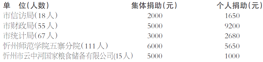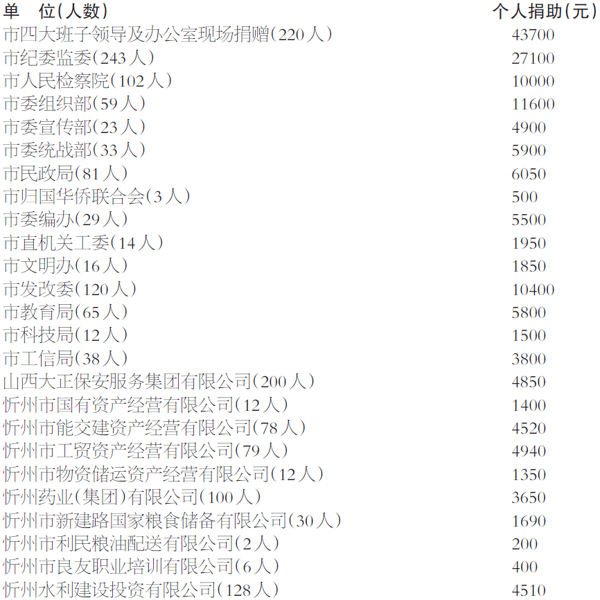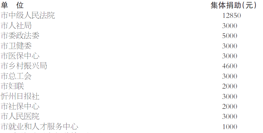 2023年11月10日,市委、市政府辦公室發(fā)出《關(guān)于開展“送溫暖、獻(xiàn)愛心”社會捐助活動的通知》,市四大班子領(lǐng)導(dǎo)和機關(guān)率先垂范,各縣(市、區(qū))、各單位高度重視,認(rèn)真組織,廣大干部職工積極響應(yīng),“送溫暖、獻(xiàn)愛心”社會捐助活動有效開展。截至2024年4月底,市直133個單位組織干部職工參與捐助,共捐款83.37萬元,各縣(市、區(qū))接收捐款365.92萬元,合計捐款449.29萬元,為解決我市困難群眾的基本生活問題起到了積極作用。現(xiàn)將捐助情況公告如下(市直單位以捐助時間先后為序):