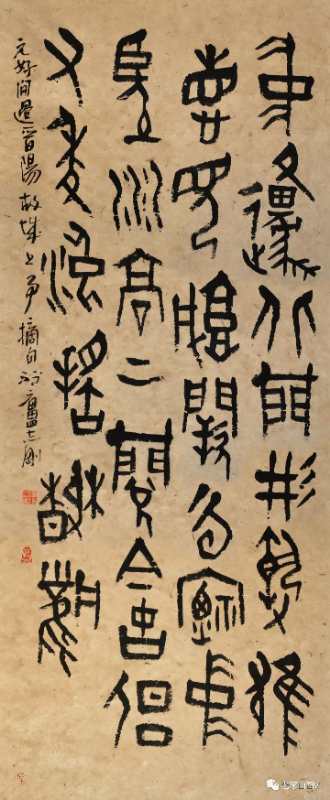 志剛先生因篆悟書,于書入篆,實(shí)際上就是兼顧了書寫的本質(zhì),找到了體現(xiàn)“漢字”本性的落點(diǎn)。對(duì)于一個(gè)書法家來講,除了解決書法的共性特征外,必須解決自己的個(gè)性特征才能名符其實(shí),否則就很難有較高的成就。因?yàn)椤白钡木C合性和獨(dú)特表現(xiàn)性,正好可以給書寫者提供一種理解書法特質(zhì)的通道,那就是如何在更為有限的空間里呈現(xiàn)漢字審美的問題!在篆里,漢字固定的型,卻可以,而且必須根椐不同的語境有所改變才會(huì)呈現(xiàn)出藝術(shù)魅力。也就是先能“有”,然后再進(jìn)入“無”,從“有”入“無”就可以得自由,如果能夠解決這一問題,并將之綜合體現(xiàn)在書法創(chuàng)作中自然就會(huì)有在非同凡響的面貌。