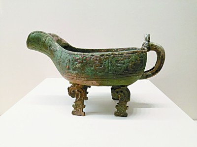 陜西韓城出土的鳳鳥(niǎo)紋盉(音禾,酒器)本報(bào)記者 李韻攝/光明圖片