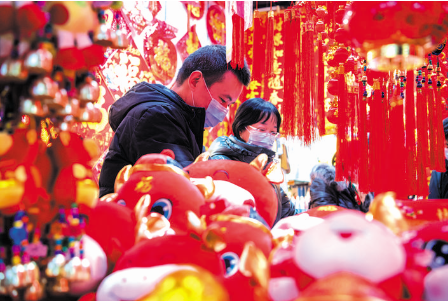 隨著春節(jié)的日益臨近,太原市的市民開始選購年貨,迎接新春佳節(jié)的到來。圖為1月31日,市民在太原市迎澤區(qū)雙塔寺街的一家市場(chǎng)內(nèi)選購年貨。(新華社記者 楊晨光 攝)