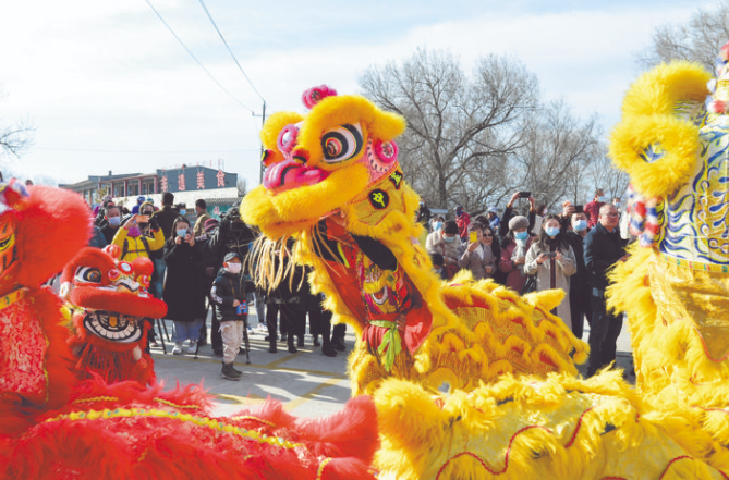 2月19日,一場群眾文化主題活動在內(nèi)蒙古自治區(qū)呼和浩特市回民區(qū)莫尼山非遺小鎮(zhèn)舉行,吸引許多游客體驗(yàn)觀賞,感受傳統(tǒng)文化的魅力。圖為在呼和浩特市回民區(qū)莫尼山非遺小鎮(zhèn),民間藝人表演舞獅。 (新華社發(fā) 王 正 攝)