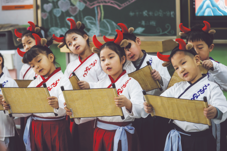3月1日,全國多地中小學(xué)開學(xué)。學(xué)生們?cè)谛问蕉鄻拥拈_學(xué)第一課中迎來了新的學(xué)期。圖為遼寧省沈陽市和平一校長白島一分校1年級(jí)2班的學(xué)生在上開學(xué)第一課,學(xué)生代表進(jìn)行了傳統(tǒng)文化節(jié)目表演。 新華社記者 潘昱龍 攝
