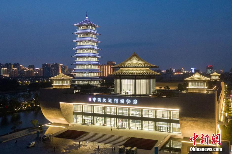 6月15日,江蘇省揚州市,中國大運河博物館流光溢彩“盛裝”亮相。揚州中國大運河博物館坐落于揚州三灣古運河畔,由展館、內(nèi)庭院、館前廣場、大運塔和今月橋五部分組成,將于6月16日正式開館。揚州是中國大運河的原點城市和申遺牽頭城市,2500多年前吳王夫差在揚州開鑿古邗溝,拉開了中國大運河的序幕。圖為中國大運河博物館流光溢彩“盛裝”亮相。 (泱波 攝)