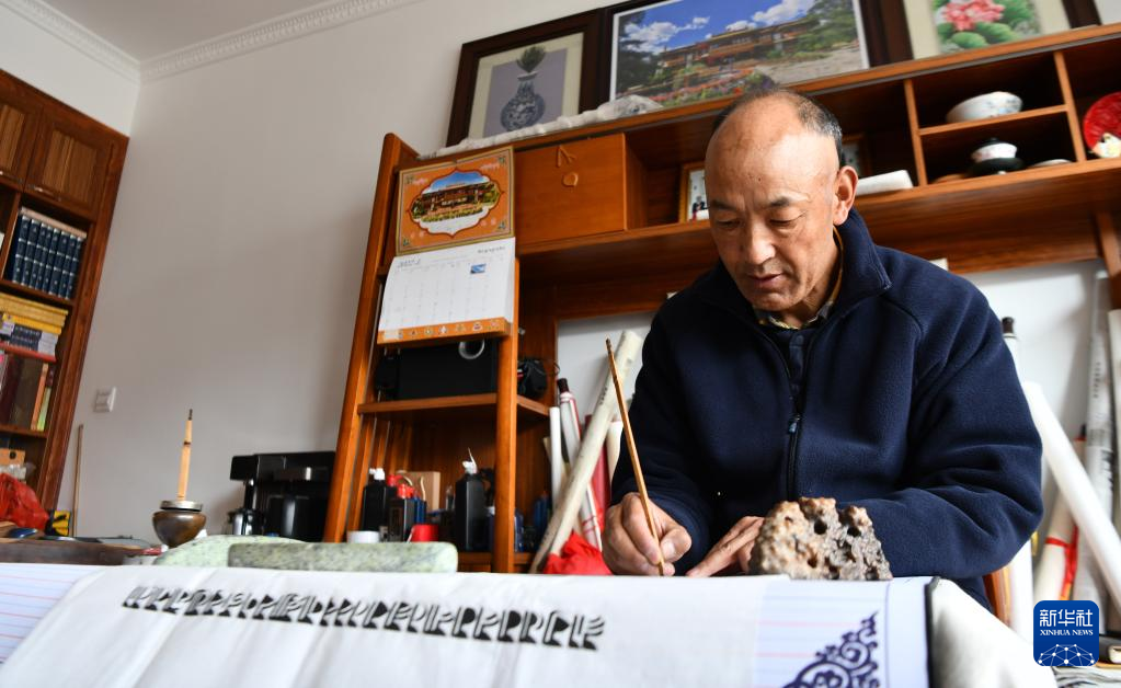 完成貝葉經(jīng)普查和修復(fù)工作后,久米次成仍躬耕古籍修復(fù)事業(yè),堅持不懈完成了多部藏文文獻的修繕普查任務(wù)。2017年,久米次成入選第一批“西藏工匠”。新華社記者 晉美多吉 攝