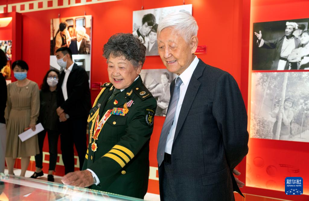 5月19日,老藝術(shù)家徐曉鐘(右一)、陶玉玲(右二)在第六屆中國文聯(lián)知名老藝術(shù)家藝術(shù)成就展上觀展。