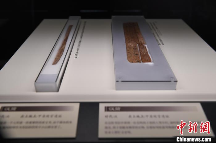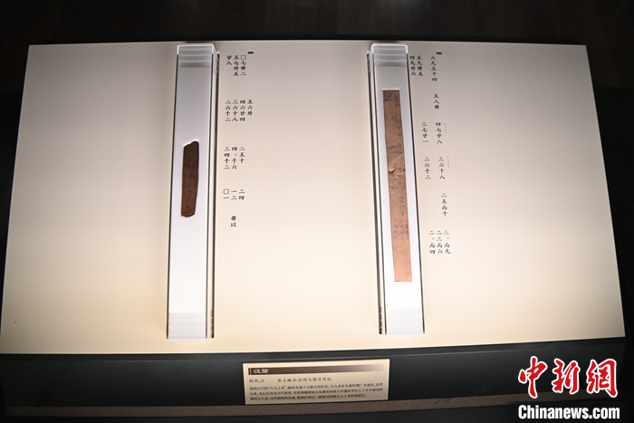圖為9月7日,甘肅蘭州,甘肅簡牘博物館里展出敦煌馬圈灣遺址出土的漢簡“九九之數(shù)”。中新社記者 九美旦增 攝