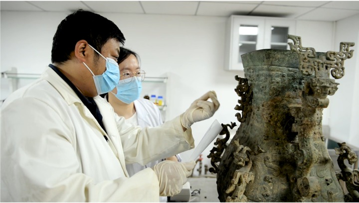 “隨著文物保護(hù)修復(fù)理念不斷進(jìn)步,現(xiàn)在不再單純強(qiáng)調(diào)干預(yù)性修復(fù),而是更加注重預(yù)防性保護(hù)?!倍虐舱f。像醫(yī)生對(duì)待“老病號(hào)”一樣,杜安對(duì)蓮鶴方壺也在進(jìn)行長(zhǎng)期“隨診”,除了定期用技術(shù)手段進(jìn)行監(jiān)測(cè)外,只要有空,他都會(huì)去放置蓮鶴方壺的展柜旁溜達(dá)幾圈,“‘望聞問切’,得親眼看看才放心。”