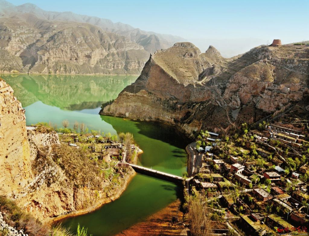 關(guān)河口的地理形勢相當險要,是一處絕妙的黃河景觀。關(guān)河入黃河處河道幽深狹窄,蜿蜒曲折的崖壁垂直落下,高度約100余米。關(guān)河口村對面的崖壁更為險要,俗稱螞蟻崖,意為從崖頂看崖底的人,小如螞蟻,驚險可怖。明萬歷年間的偏關(guān)學(xué)士盧承業(yè)在《關(guān)河魚浪》詩里詠嘆道:“關(guān)西形勢若崤函,北塞天橫折向南。巖戍飛樓懸壯劍,河翻浪雪點幽潭?;h蝶影驚魚穴,風(fēng)送濤聲破烏庵。相接云峰傳八陣,籌邊人至把兵談?!痹娭忻枋鑫麝P(guān)河口地勢險要,形若西秦函谷關(guān),就連懸崖峭壁上的巖石和望河樓也像懸在半空中戍邊的利劍,令來犯者望而卻步。但這些都無法掩飾關(guān)河口恬適幽靜的景致,河浪如雪,濤聲如雷,潭似點墨,花開花落,彩蝶翩翩,魚影躍躍……此情此景誰能將它與烽火連天的邊關(guān)聯(lián)系在一起呢?