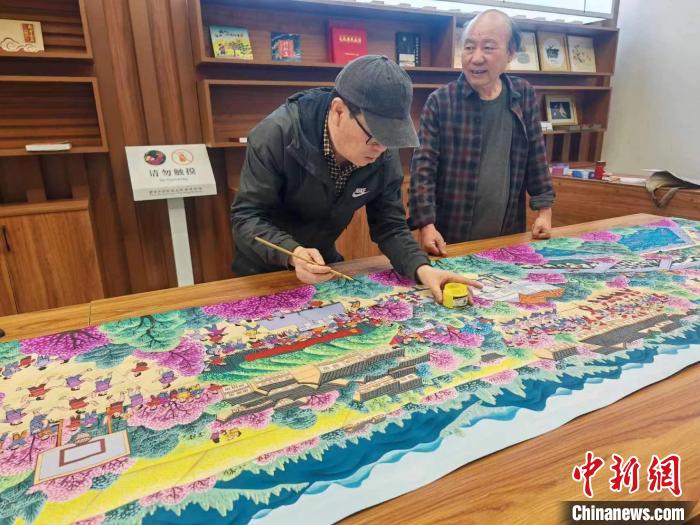 中新社西安2月17日電 題:農(nóng)民畫成外國人了解中國農(nóng)村的一扇窗 中新社記者 阿琳娜 “農(nóng)民畫畫的是我們的生活,比如春節(jié)的很多習(xí)俗在農(nóng)民畫中都有所體現(xiàn)。不僅如此,從不同作品中,還能看到時代變遷下過年的不同場景?!蔽靼彩朽傄貐^(qū)六老庵村村民柳緒緒表示,農(nóng)民畫創(chuàng)作者用畫筆展示生活,心愿簡單而質(zhì)樸。 西安市鄠邑區(qū)是中國農(nóng)民畫的發(fā)源地之一,先后被命名為“中國現(xiàn)代民間繪畫之鄉(xiāng)”“中國民間藝術(shù)之鄉(xiāng)(農(nóng)民畫)”。1958年誕生至今,西安鄠邑區(qū)農(nóng)民畫逐漸形成了創(chuàng)作主題貼近生活、反映時代、地域特色鮮明、浪漫稚拙、絢麗多彩的民間繪畫風(fēng)格。 “我們生活在農(nóng)村,創(chuàng)作的作品都是‘有感而發(fā)’,用畫筆追憶過去,記錄如今,憧憬未來?!绷w緒說,他從二十世紀(jì)六十年代初便開始畫農(nóng)民畫,多年來用畫筆感悟著時代之變,生活之變。農(nóng)民畫已成為他生活的一部分,春節(jié)期間,閑暇之余,他也會習(xí)慣性地“寫寫畫畫”。