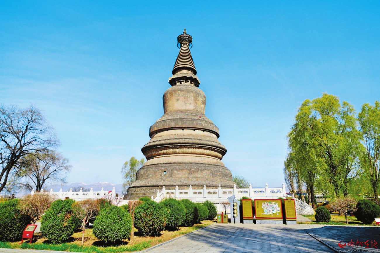 阿育王塔位于代縣上館鎮(zhèn)東北街村東大街北縣政府后院。據(jù)《代縣志》記載,原為圓果寺內(nèi)建筑,1937年日軍拆毀寺院,僅存磚塔。該塔始建于隋仁壽元年(601年),初為木結(jié)構(gòu),唐會(huì)昌五年(845年)“滅法”時(shí)被毀,唐大中元年(847年)、宋元豐三年(1080年)、崇寧元年(1102年)重建,元至元十二年(1275年)改建為磚塔。該塔為喇嘛式磚塔,通高40米,占地面積1876平方米。塔平面呈圓形,磚石砌臺(tái)基,底徑20米,高1.5米。臺(tái)基上設(shè)束腰基座,刻有仰覆蓮瓣及纏枝花紋。塔身為圓形覆缽,塔剎分為剎座、相輪、傘蓋和寶珠,剎座須彌式,座中心矗立1根鐵質(zhì)剎桿,砌相輪十三層,上置圓形露盤,狀為傘蓋,極頂置寶珠,上下疊置。2001年公布為全國(guó)重點(diǎn)文物保護(hù)單位。