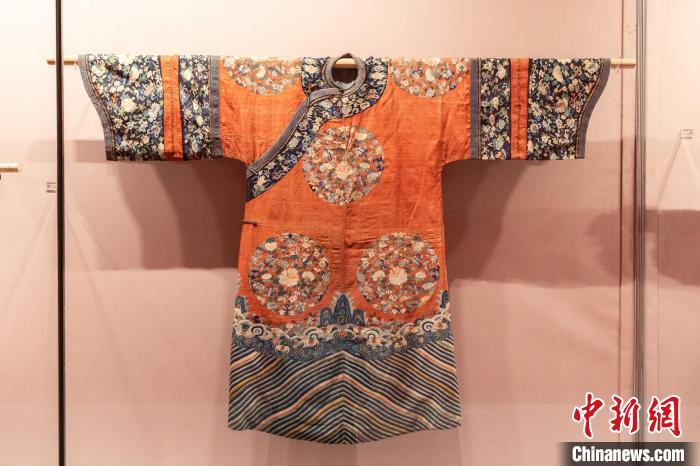 圖為清代緙絲紅地八團(tuán)花卉紋吉服袍。受訪者供圖