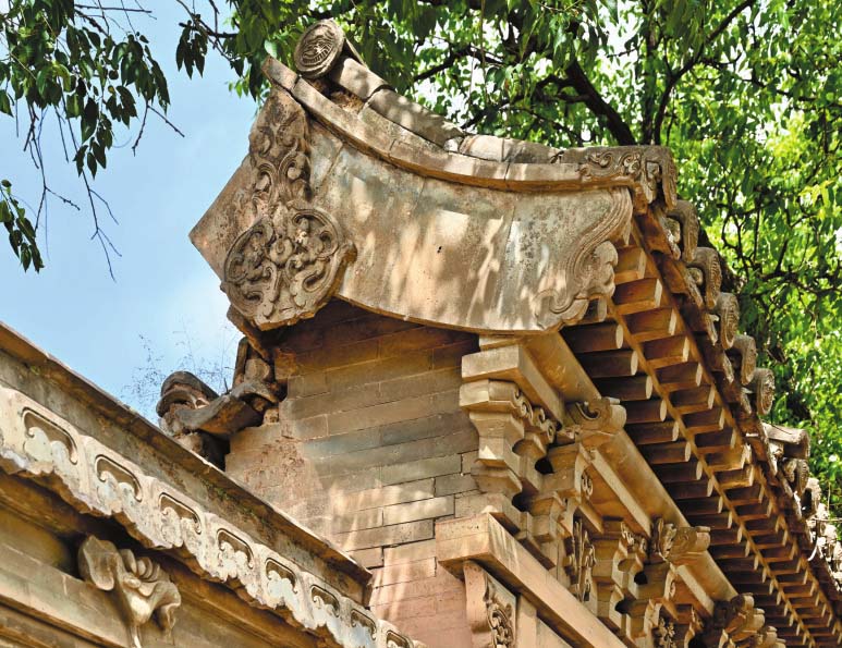 ▲保德康家灘康氏民居的硬山頂磚雕懸魚,菱形蝙蝠、蓮花、銅錢圖案。