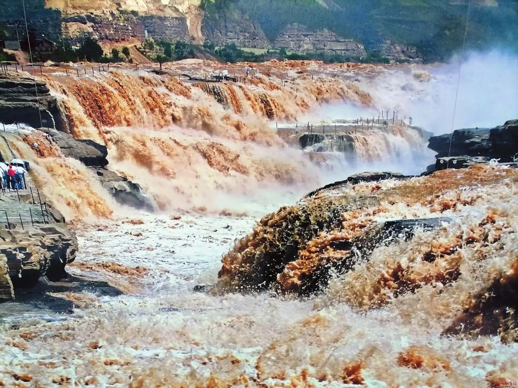 次日一大早,我獨(dú)自沿著黃河岸邊山西吉縣段向北行走,邊鍛煉身體邊觀瀑。黃河奔流至此,石壁峭立,河口收縮如壺口,故名。河面壓縮到二三十米,每秒一千立方米的河水,從二十多米高的陡崖上傾注而瀉,形成“千里黃河一壺收”的壯美景象。壺口瀑布是國(guó)家5A級(jí)風(fēng)景名勝區(qū),東瀕山西省吉縣壺口鎮(zhèn),西臨陜西省宜川縣壺口鎮(zhèn),為兩省共有的旅游景區(qū)。一瀑布連二省,同名同鎮(zhèn),秦晉之好,傳為佳話(huà)。