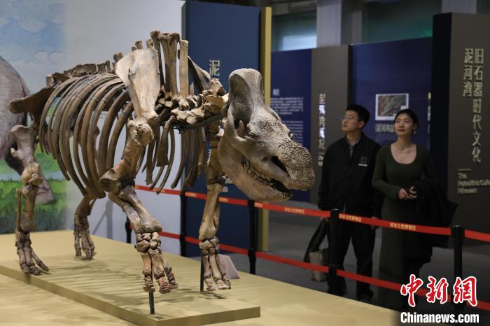 3月12日,正在國(guó)家自然博物館臨展一廳展出的“閃耀東方——泥河灣百萬(wàn)年人類印記”展覽吸引游客觀看。記者 田雨昊 攝