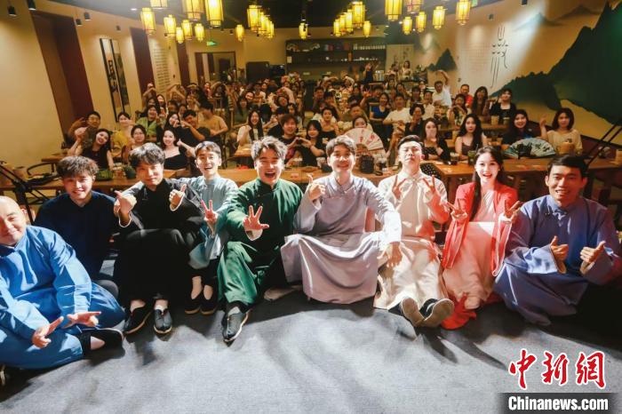“之前只在線上聽過傳統(tǒng)相聲,來了才知道相聲還能這么玩,我錄制了視頻發(fā)在朋友圈,好幾個朋友都說要來打卡?!薄癦世代”張倩是這家相聲館的“老粉”,每周從不缺席。“我還‘安利’給了丈夫和孩子,我們經(jīng)常一家三口來聽相聲,孩子現(xiàn)在都能說兩句貫口了?!睆堎徽f。