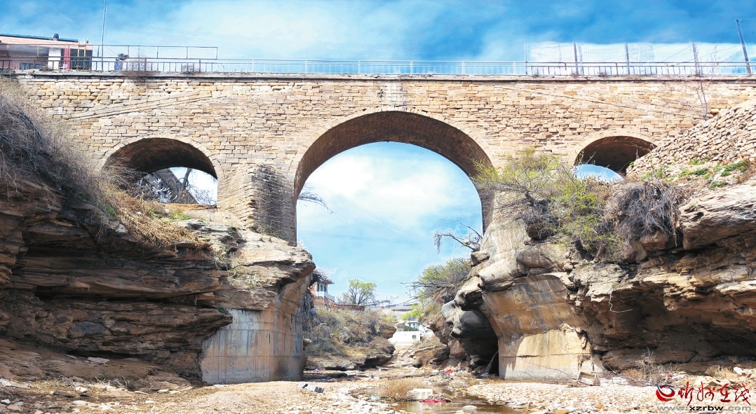 “橋頭”之名,或因村東朱家川河上的古橋——普濟(jì)橋。普濟(jì)橋俗稱(chēng)“橋頭橋”“五孔橋”,位于橋頭村東,南北向跨于朱家川河上,是保德縣最大的石拱橋。明清兩朝,河上大橋多次重建,現(xiàn)存為清同治年間重修,其規(guī)制可與馳名天下的趙州橋相提并論,也是五孔,全長(zhǎng)四十余米,寬五米多,橋頂離水面十余米。昔年橋上石欄護(hù)板俱全,20世紀(jì)60年代朱家川河突發(fā)洪水,水漫橋頂,欄桿護(hù)板被沖毀,所幸大橋安然無(wú)恙。