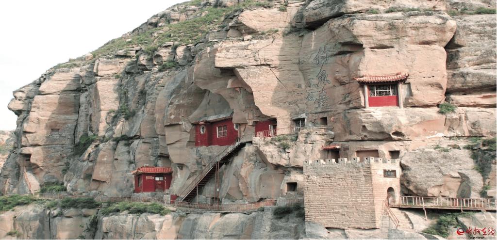 故城石窟位于保德縣楊家灣鎮(zhèn)故城村西1500米、黃河東岸石崖上。清順治二年(1645),由陳奇瑜構(gòu)筑,歷時三年建成,建有呂仙祠等建筑。故城石窟坐東向西,占地面積約600平方米。向南石砌的古堡式門洞,門洞上方匾書“釣魚臺”,頂部砌有女兒墻垛口。山壁上有大小不等的10孔人工開鑿的石窟。