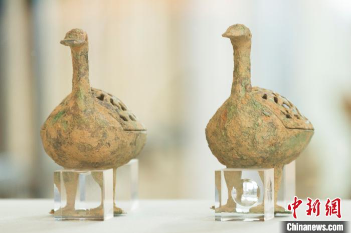 圖為睡鴨造型的漢代青銅香薰?fàn)t。黃維正 攝