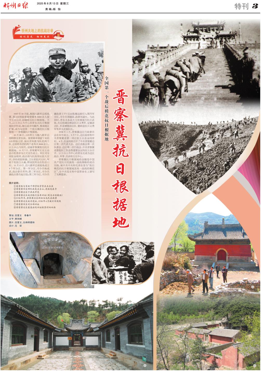 1937年10月底,根據(jù)八路軍總部部署,第115師政委聶榮臻率3000余人留守五臺山區(qū),創(chuàng)建敵后抗日根據(jù)地。不久,以五臺山為中心的晉東北抗日根據(jù)地初步形成,隨后逐步向冀西、察南地區(qū)擴(kuò)展,成為全國第一個敵后模范抗日根據(jù)地——晉察冀抗日根據(jù)地。
