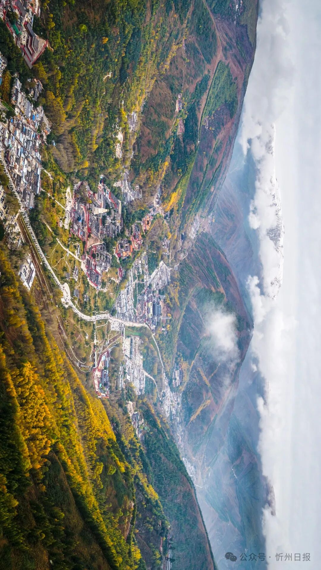 ▼(請(qǐng)橫屏觀看,五臺(tái)山臺(tái)懷鎮(zhèn)中心區(qū)。攝影楊國(guó)軍)