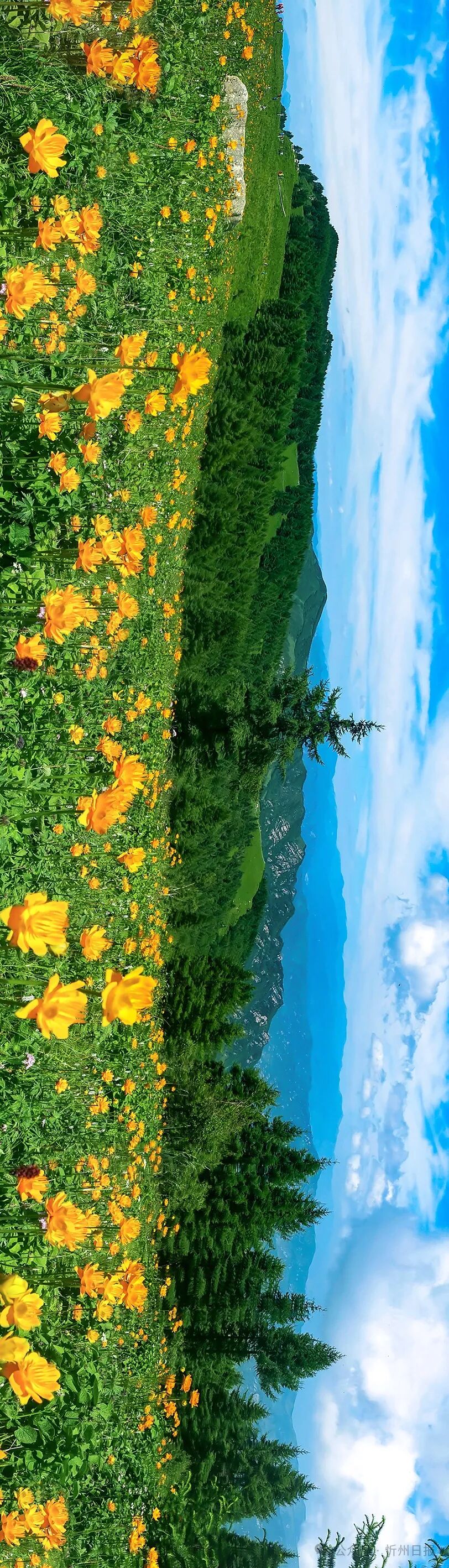 ▼(請(qǐng)橫屏觀看,駝梁漫山遍野的金蓮花。攝影王光宏)