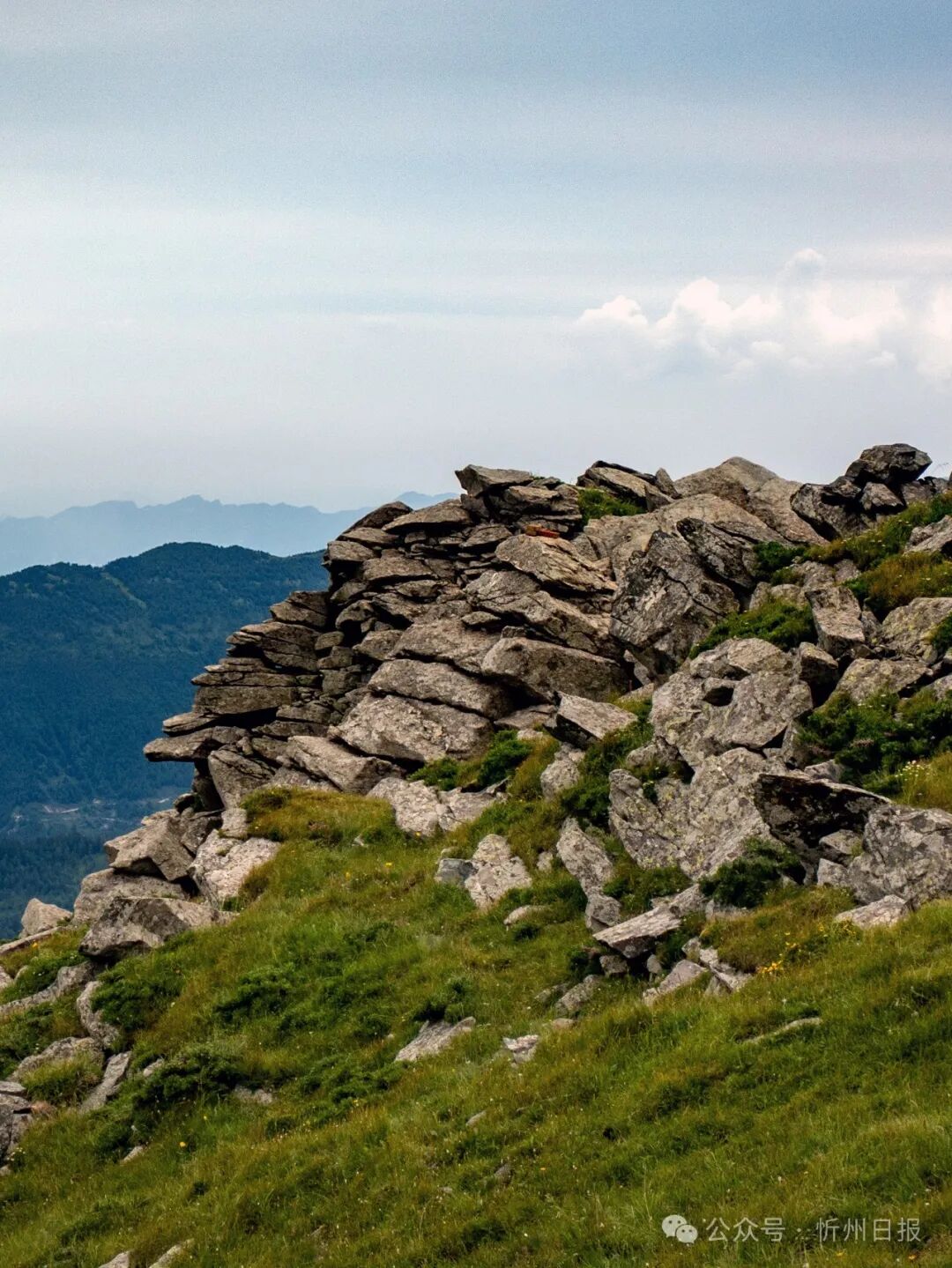 ▼(五臺(tái)山頂部的石丘,是一種冰川邊緣地區(qū)由于地表水分反復(fù)凍結(jié)、融化而形成的地貌。攝影楊國(guó)軍)