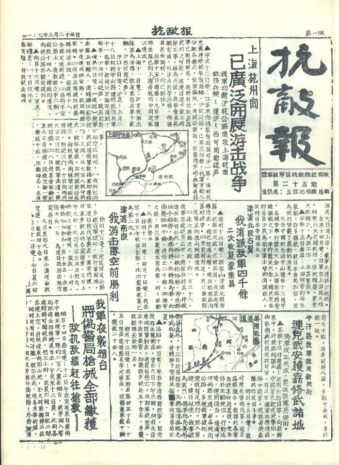 抗戰(zhàn)時(shí)期,忻州既是晉察冀、晉綏兩大根據(jù)地的中心腹地,也是抗戰(zhàn)初期全面抗敵的主戰(zhàn)場(chǎng)。忻州以其地理咽喉、戰(zhàn)役要沖、根據(jù)地核心和人民戰(zhàn)爭典范的多重角色,成為抗日戰(zhàn)爭中抵御日軍侵略、堅(jiān)持?jǐn)澈蠖窢幍膽?zhàn)略支點(diǎn)之一。其歷史貢獻(xiàn)不僅體現(xiàn)在軍事上,更彰顯了中華民族不屈不撓的抗戰(zhàn)精神。隨著八路軍平型關(guān)大捷、雁門關(guān)伏擊戰(zhàn)、夜襲陽明堡飛機(jī)場(chǎng)等戰(zhàn)役勝利,1937年11月7日晉察冀軍區(qū)在五臺(tái)成立。12月11日,《抗敵報(bào)》誕生。1940年11月,《抗敵報(bào)》改名為《晉察冀日?qǐng)?bào)》,鄧拓任報(bào)社主任?!犊箶硤?bào)》最初在五臺(tái)石嘴村石印,后改鉛印。1938年1月,晉察冀邊區(qū)行政委員會(huì)在河北阜平成立,兩月后,邊區(qū)行政委員會(huì)遷駐五臺(tái)射虎川臺(tái)麓寺,報(bào)社、印刷廠分駐海慧庵、蛤蟆石古佛寺。1940年9月18日,晉綏分局機(jī)關(guān)報(bào)《抗戰(zhàn)日?qǐng)?bào)》,伴隨著隆隆炮火聲,在距離忻州不遠(yuǎn)的興縣艱難創(chuàng)刊。自此,那些戰(zhàn)地記者、通訊員甚或普通民眾,有名的,無名的,以個(gè)人名義,以集體名義,在極其艱苦的條件下,用滾燙筆尖秉筆直書,為我們珍存了那些發(fā)生在忻州大地上前仆后繼、可歌可泣的抗戰(zhàn)故事,也讓今天的人們一旦捧讀就會(huì)熱血沸騰。