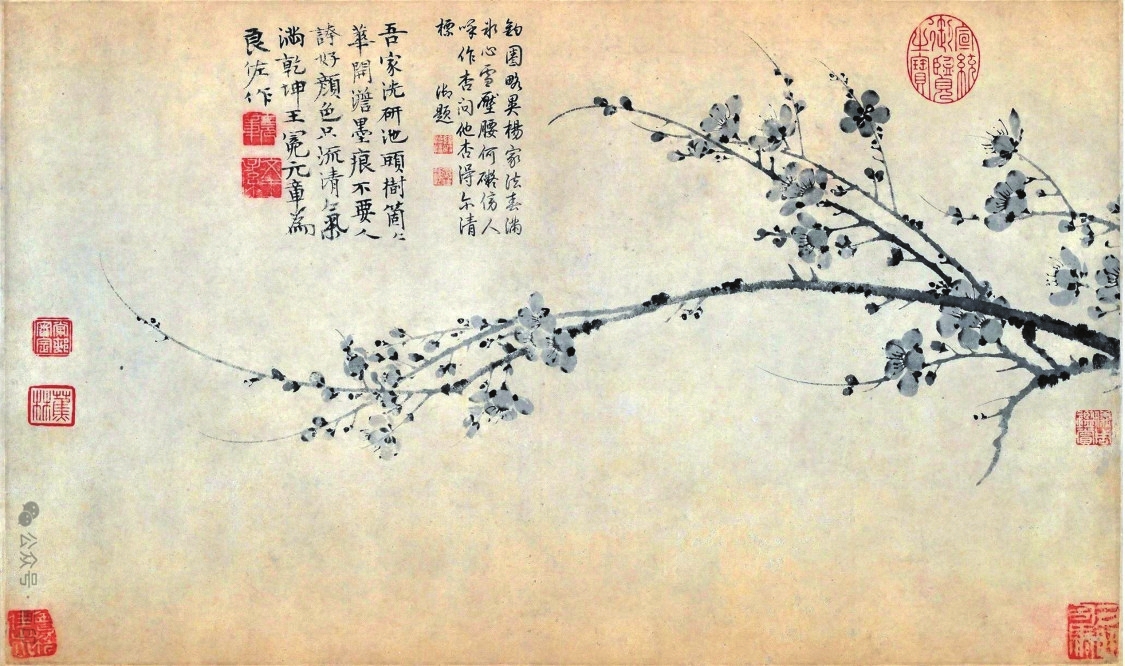 以梅入畫,最早出現(xiàn)于南北朝時(shí)期,不過并未成氣候,直到宋代,以梅花入題的中國畫才顯露實(shí)績。人們所熟知的“梅妻鶴子”典故與北宋隱士林逋有關(guān),雖以愛梅著稱,但他并無梅花繪畫作品傳世。被稱為“墨梅始祖”的僧人仲仁亦活躍于宋代,他以水墨深淺描摹梅花,全然摒棄色彩,后世稱之為“墨梅”。