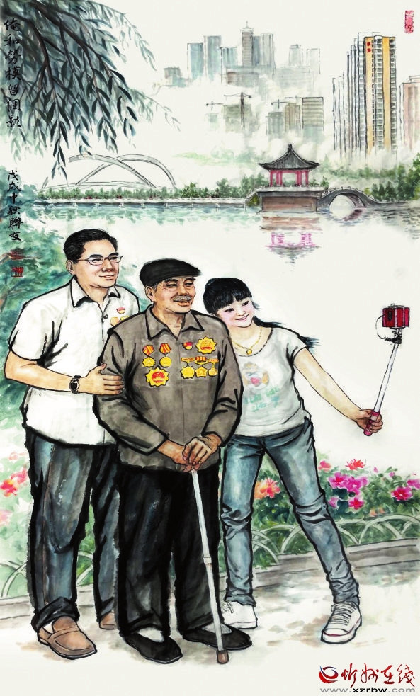 不負人民養(yǎng)育恩,熊熊烈火見真情。 和平戰(zhàn)事同聽喚,血肉長城更堅固。 無臂繡娘