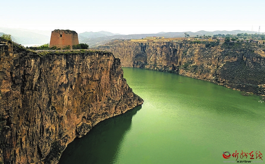老牛灣三面環(huán)水,一面連山,呈牛頭形狀,古堡古村落聳峙在懸崖峭壁之上,古村房舍都采用當(dāng)?shù)厥膲酒龆?,石碾石磨隨處可見(jiàn),石墻石院隨形而就,因此老牛灣還有石頭民俗博物館之稱。老牛灣的高臺(tái)之上,建有被譽(yù)為“黃河河防長(zhǎng)城第一堡”的老牛灣堡,守衛(wèi)著長(zhǎng)城與黃河。城堡北側(cè)的山崖邊,矗立著一座居高臨下俯瞰黃河的空心磚樓,它就是老牛灣的標(biāo)志望河樓。據(jù)《山西通志》載:老牛灣堡北至長(zhǎng)城0.5公里,明成化三年(1467)總兵王璽筑墻,崇禎九年(1636)兵備盧友竹建堡。望河樓屹立在這里已經(jīng)長(zhǎng)達(dá)近400年。史料記載:望河樓夏守邊而冬守河。夏季瞭望外敵從陸路過(guò)來(lái),冬季河面封凍,敵人容易從冰面上來(lái)犯,如果發(fā)現(xiàn)敵人來(lái)襲,則用燃放狼煙的方式向上一級(jí)匯報(bào),望河樓以此保護(hù)一方平安。