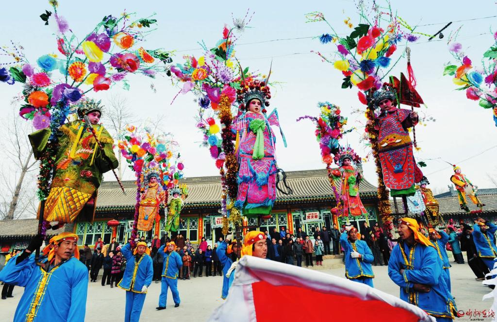 提起當年盛況,郝來喜依舊難掩喜悅,“峨口村村都可以組織起隊伍,少則十二架,多則二十四架,也叫全架。每年正月十三到十六,三個村一共六十多架撓閣全體出動?!焙聛硐舱f,在從前,撓閣是一項全民參與的文藝活動,家家戶戶積極性都很高。