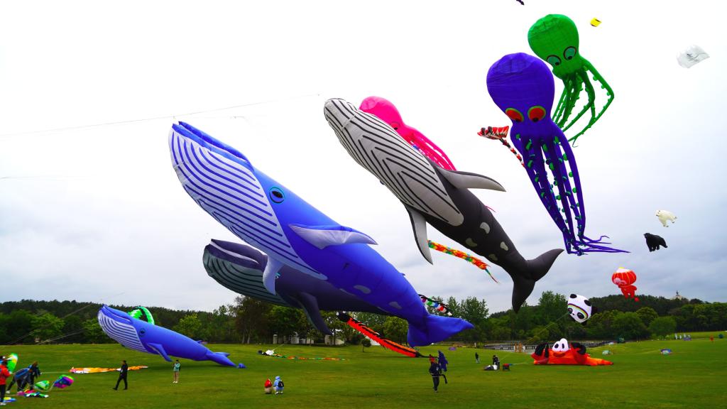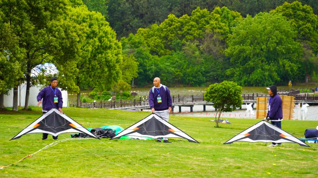 4月24日,運動風箏參賽選手正在做賽前準備。新華社記者龔聯(lián)康攝 各路風箏好手將在4月24日至25日兩天內,參加7個競賽項目的角逐和5個傳統(tǒng)項目的表演。其中,競賽項目有運動風箏雙線個人芭蕾賽、運動風箏雙線團體芭蕾賽、運動風箏四線單人芭蕾賽、運動風箏四線雙人芭蕾賽、運動風箏四線團體芭蕾賽、運動風箏雙線團體規(guī)定動作賽、運動風箏四線團體規(guī)定動作賽;傳統(tǒng)風箏表演項目則有最佳掛件類、滾地龍、軟體類、六角打斗、龍類風箏。 本次風箏節(jié)上,大蜈蚣、大章魚等各式各樣造型的軟體風箏在木蘭草原天空中隨風游動,上演“天空動物園”,場面蔚為壯觀。其中,長度超過40米的巨型鯨魚風箏受到了眾多游客的熱捧。