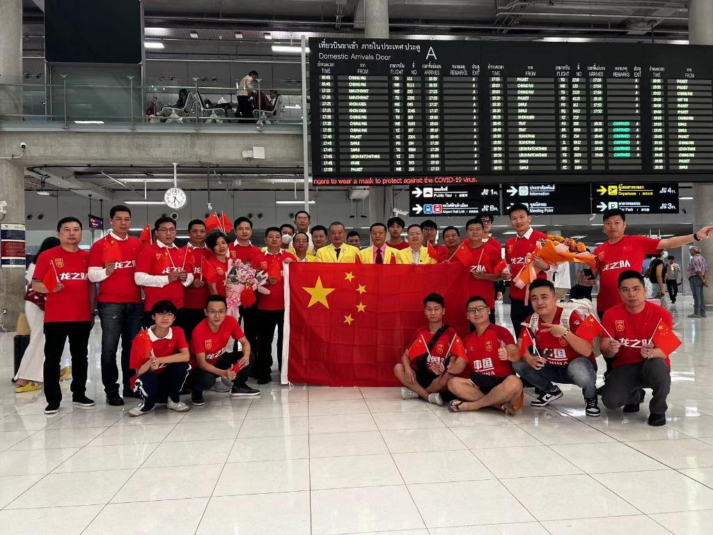 中國球迷在泰國機場準(zhǔn)備迎接國足抵達。