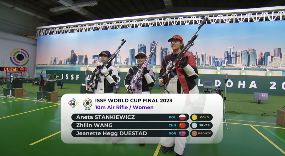 在女子10米氣步槍資格賽中,王芝琳以634.2環(huán)的成績位列榜首,中國隊韓佳予和黃雨婷分別以第二名和第四名的成績進入決賽。決賽中,波蘭選手斯坦凱維奇發(fā)揮神勇,以253.3環(huán)的成績奪冠,王芝琳以0.7環(huán)之差獲得銀牌,挪威選手迪斯塔德拿到銅牌。杭州亞運會冠軍黃雨婷排在第四位,韓佳予位列第六。