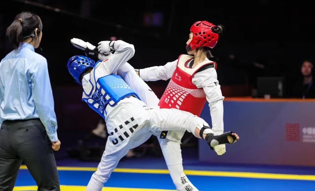 當日,女子46公斤級決賽在江西選手王詩怡和浙江選手傅曉璐之間展開。比賽前兩局雙方平分秋色。第三局局末,傅曉璐憑借一次后旋踢擊軀干得分確立優(yōu)勢,最終奪冠的同時,她還成為本次賽事的女子最佳技術獎得主。