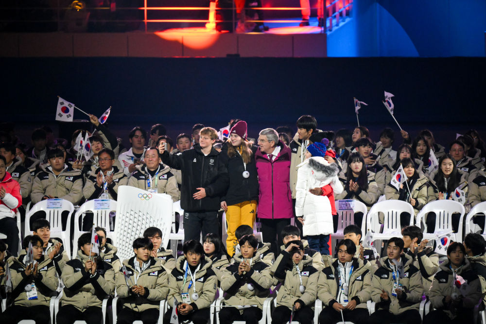 1月19日,國際奧委會(huì)主席巴赫在江陵速滑館開幕式現(xiàn)場與運(yùn)動(dòng)員合影。當(dāng)日,第四屆冬季青年奧林匹克運(yùn)動(dòng)會(huì)開幕式在韓國江原道江陵速滑館和平昌圓頂體育館同時(shí)舉行。新華社記者 朱煒 攝